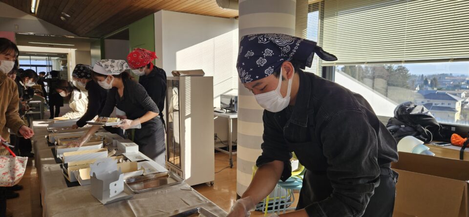 会場でそのまま食べる学生や、持ち帰って家で楽しむ学生、